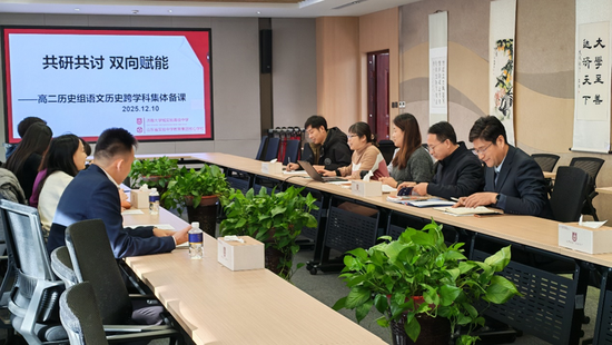 在“沉浸·感知”环节,学员们聆听了学校管理及文化专题报告,实地走访了创客中心、无人机实验室、航空航天基地、寰宇图书馆、各类体育场馆等特色空间,切身感受了学校“人文铸魂”的育人氛围与现代化办学条件。随后,他们深入语文、政治课堂进行观摩,并参与备课组评课,细致考察了学校在构建核心素养导向的“人文课堂”与“学术课堂”方面的扎实探索。此外,学员们还参与高二历史组组织的以“共研共讨,双向赋能”为主题的跨学科集体备课活动,通过学科互补实现教学提质,为激发学生学习兴趣与好奇心提供经验与建议,助力学生综合素养培育。