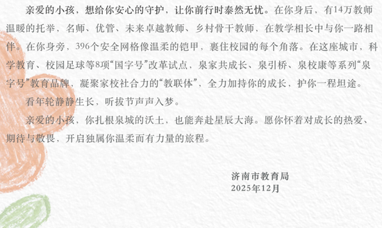 济南市教育局喊话小孩:你不需要长成别人家的孩子