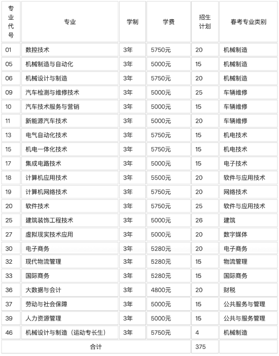 山东劳动职业技术学院2026年高职单独招生专业对应的春季高考统一考试专业类别发布