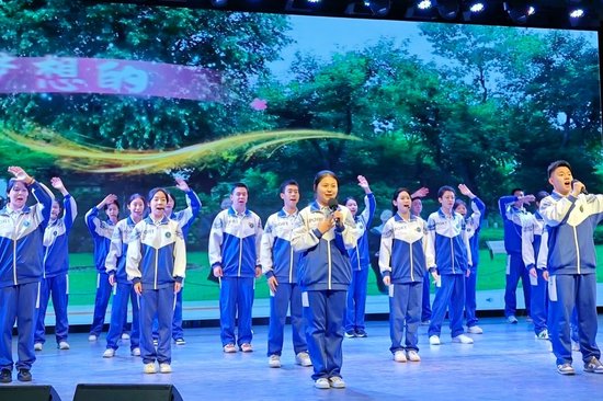 活动最后,“齐声共鸣·共约未来”的恢弘合唱将全场气氛推向顶点。全体师生肃然起立,齐声唱响校歌《向光而行》,歌声凝聚共识,共鸣坚定信念。在校歌的合唱中,整场活动圆满落幕,全体师生共同许下了以阅读点亮未来、以奋斗共赴新程的坚定承诺。