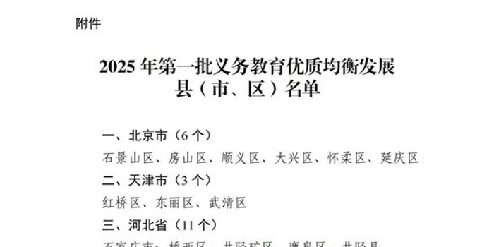 来看名单,教育部公布2025年第一批义务教育优质均衡发展县(市、区)认定结果