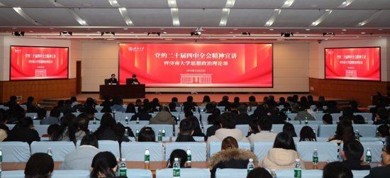 12月25日上午,副省长孙喜民到济南大学,以“把握时代大势勇担历史使命奋力书写挺膺担当的青春篇章”为题为师生讲授思政课,宣讲党的二十届四中全会精神。学校全体校领导、中层干部、独立运行科研机构负责人,师生代表聆听了报告。