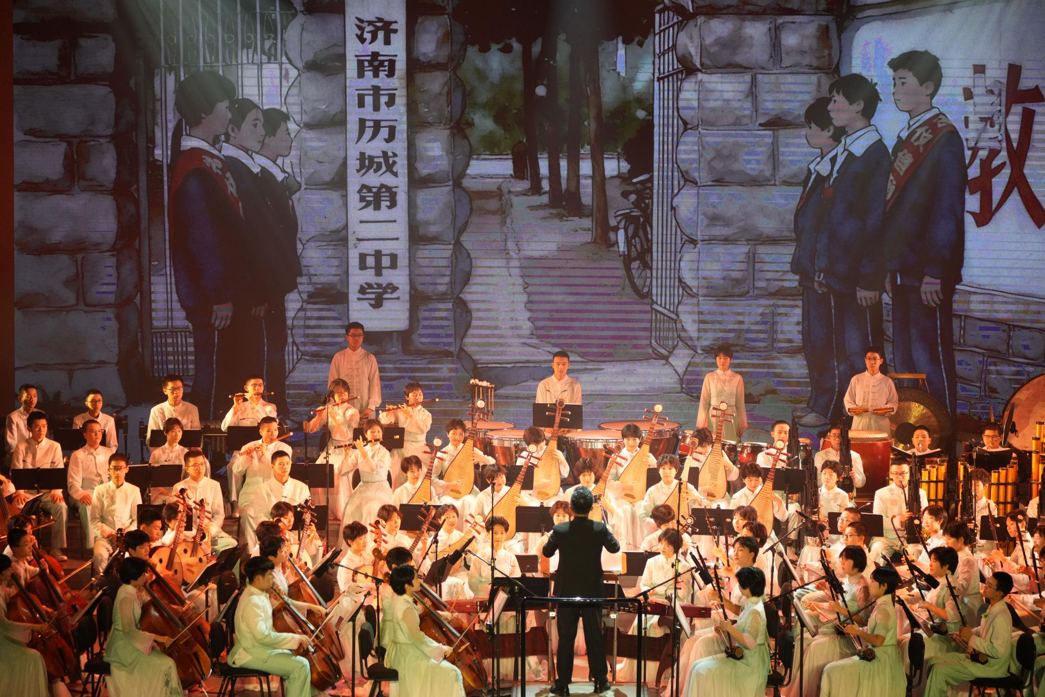 首篇章“心愿”,通过民族管弦乐《五彩的窑洞》《胤禛美人图》《秋江花月夜》等一系列作品,将个人初心与学校发展历程相映照,音乐与影像叠印、古今对话交织,传递出“历经揉擀沸煮,方成坚韧之力”的成长隐喻,最终在独唱《是你一直想着我》中落点于教育者无声的守护与学子心中不灭的灯火。