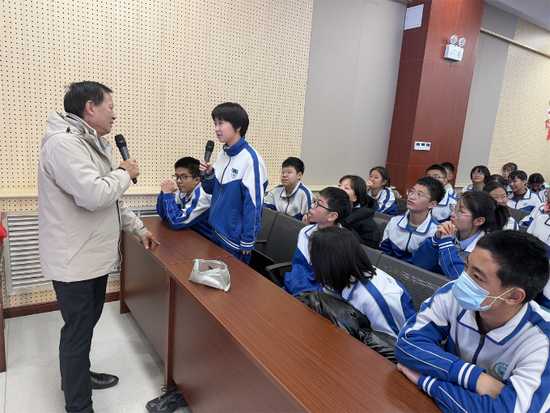 在互动环节,同学们踊跃提问,围绕文学阅读、写作技巧、压力调节等问题与鲁老师深入交流。鲁老师耐心解答每一个问题,用幽默的话语化解学子们的焦虑,传递“坚持所爱,终抵远方”的人生理念,并向同学们提出三个核心理念:一是做自己 24 小时的主人,学会科学规划时间;二是朝着一个目标前进,做到心无旁骛、持之以恒;三是掌握一到两个专属技能,打造属于自己的核心竞争力。
