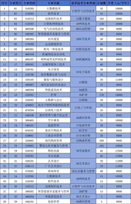 烟台南山学院2026年单独招生(普通类)各专业对应春季高考统一考试招生专业类别及计划