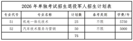 单独考试招生退役军人:素质测试时间为2026年3月7日—3月8日,具体测试方式和时间另行通知。