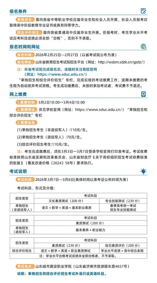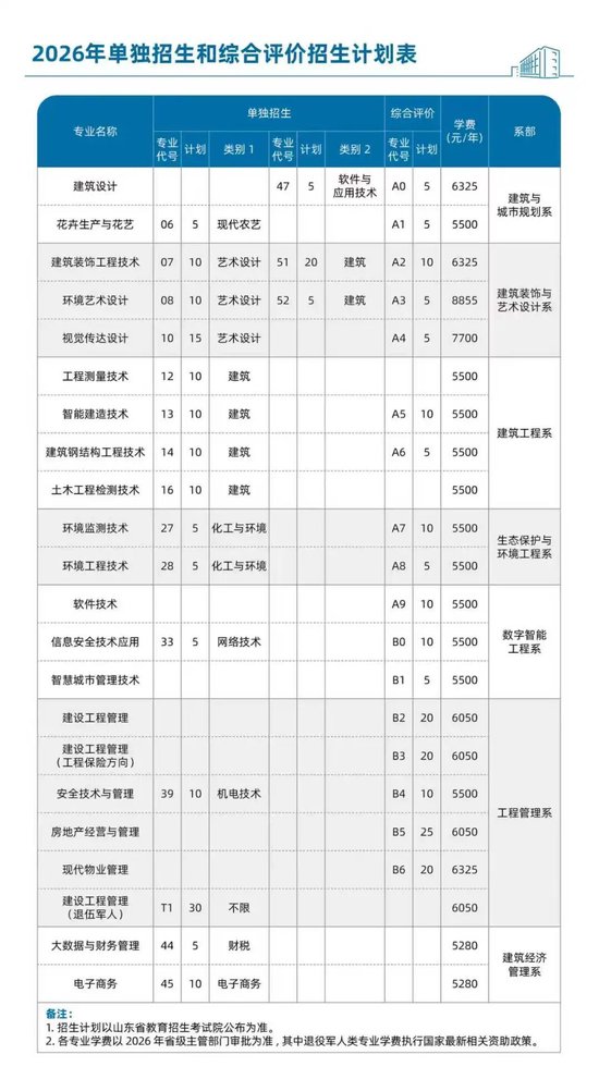 关键信息来啦!山东城市建设职业学院2026年单招综评招生简章发布