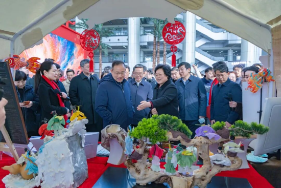 关注春潮涌动迎盛会,文旅惠民启新篇。2月4日上午,2026山东省“海洋大集”新春季暨“我们的中国梦——文化进万家”活动在烟台启动。本次活动由省委宣传部指导,烟台市委、市政府等单位主办,以“逛山东大集 购年货好品 过祥和春节”为主题,打造了集逛、赏、玩、购于一体的新春海洋消费场景。省、市领导出席启动仪式,烟台职业学院党委书记陈新姿,党委委员、副校长邵侠参加。仪式结束后,有关领导参观了同步举行的创新成果展。