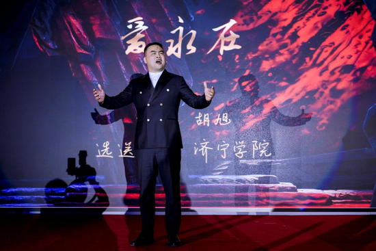 胡旭演唱的《爱永在》,取材自民族歌剧《沂蒙山》,以细腻深情的演绎,刻画了八路军战士林生在新婚离别之际,对妻子海棠的深切思念与坚定革命信念,艺术化地再现了“水乳交融、生死与共”的沂蒙精神,情感真挚,技艺精湛,获得了主持人与全场观众的一致好评。