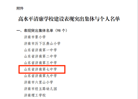 济南七中获评高水平清廉学校建设表现突出集体