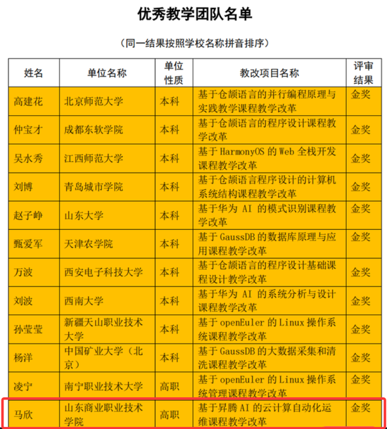 关注日前,由山东商业职业技术学院云计算技术与应用系教师马欣申请、杜玉霞、王秀翠、叶才增、刘园园作为主要成员完成的“基于昇腾AI的云计算自动化运维课程教学改革”项目,获得了华为技术有限公司与中国软件行业协会信息技术新工科产学研联盟授予的“国产软件进课堂优秀教学团队”金奖。