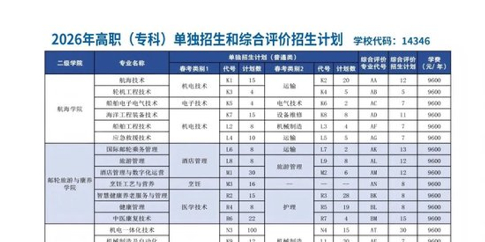 单招综评报名啦!山东海事职业学院报考代码14346