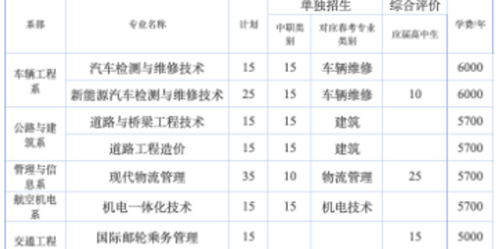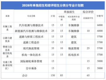 山东交通职业学院2026年单独招生和综合评价招生分类分专业计划