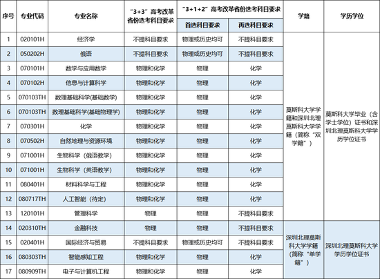 2。“单学籍”专业录取的学生将注册深圳北理莫斯科大学学籍,达到毕业要求者,颁发深圳北理莫斯科大学毕业证书;对符合学士学位授予条件的本科毕业生,授予学士学位并颁发学位证书。