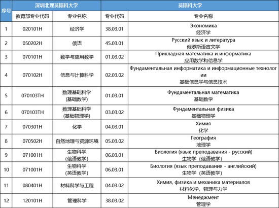 1。深圳北理莫斯科大学双学籍专业与莫斯科大学专业名称对照表