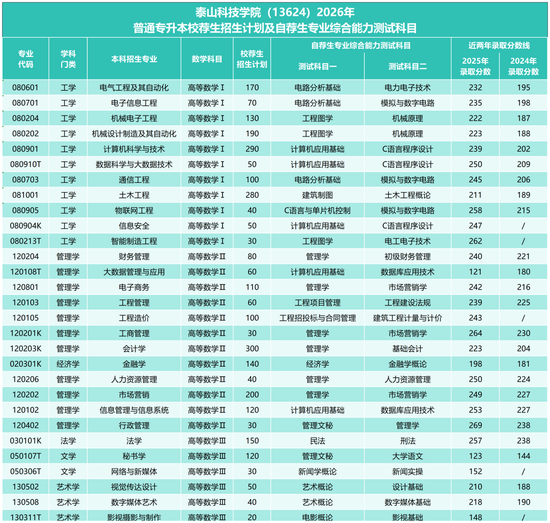泰山科技学院2026年专升本自荐生专业综合能力测试安排