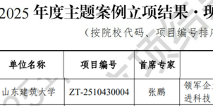 关注日前,教育部学位与研究生教育发展中心(以下简称“学位中心”)公布2025年主题案例立项结果,山东建筑大学张鹏、陈淑飞两位教授主持的2个项目成功获批立项。这是山东建筑大学首次组织参与主题案例征集申报,即成功实现该类别立项“零的突破”,充分彰显了学校在案例研究、课程建设与研究生教育改革方面的扎实基础与显著成效。