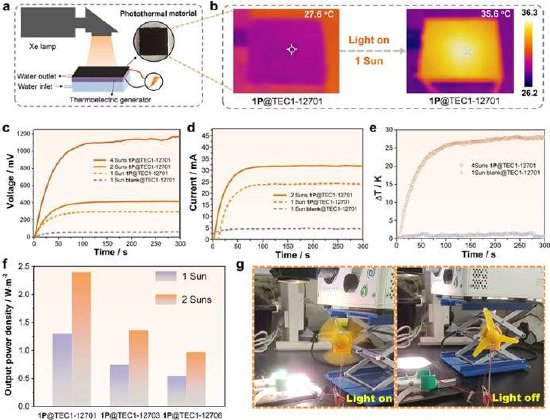 图2。 紫精光致变色化合物应用于光-热-电转换器件中的性能表征