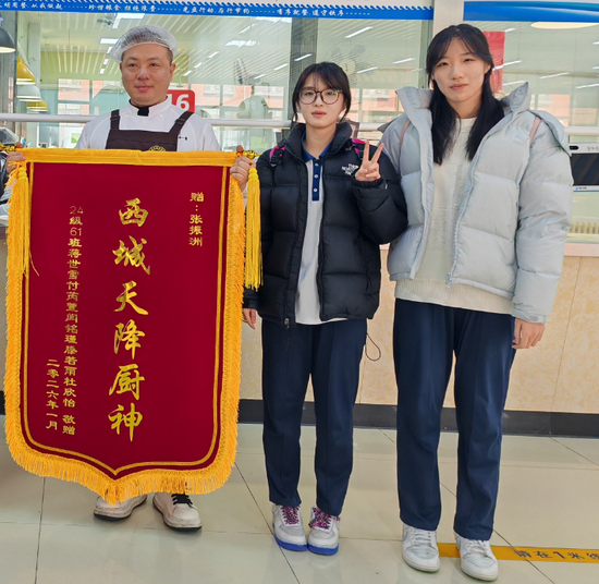 关注“就是好吃!”1月27日,济南西城实验中学食堂内暖意驱散了冬日的寒凉,2024级几名同学手捧锦旗,笑容真挚地送到厨师张振洲手中。一句朴实的夸赞,一面沉甸甸的锦旗,不仅是学子对食堂味道的最高褒奖,更让这份藏在烟火气里的情谊,在校园中悄然传递。