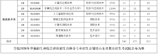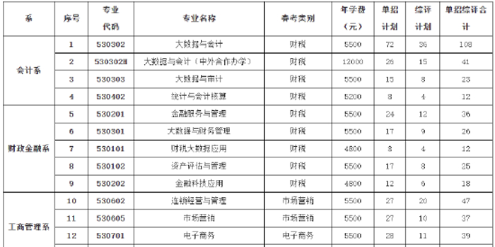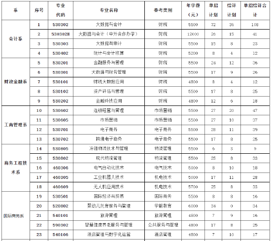 山东经贸职业学院2026年单独招生和综合评价招生分专业招生计划一览表