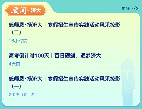 即时获取学校要闻,聚焦济大发展动态,速递权威新鲜资讯。这里汇聚学术前沿、重大成果与精彩校园活动,为你开启一扇感知济大、见证成长的窗口。
