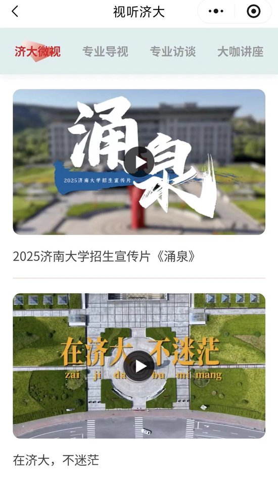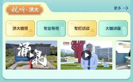 四大专栏,多维呈现。《济大微视》《专业导视》《专业访谈》《大咖讲座》系列视频,立体展现校园风貌、师资力量与发展成果等,带你沉浸式感受济大的前沿创新与实力硬核。