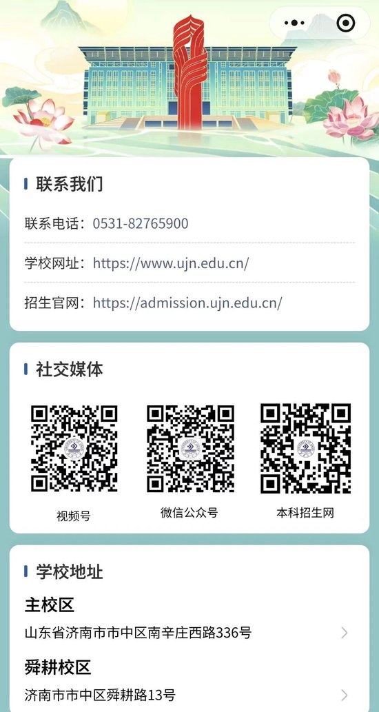 一键查询济南大学招生办公室的联系方式及社交媒体平台账号,咨询请认准官方渠道哦~