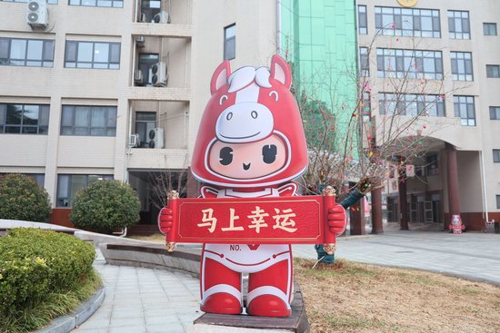 山东省实验中学将学校吉祥物“73号机器人”与马年主题相结合,打造新年新气象。