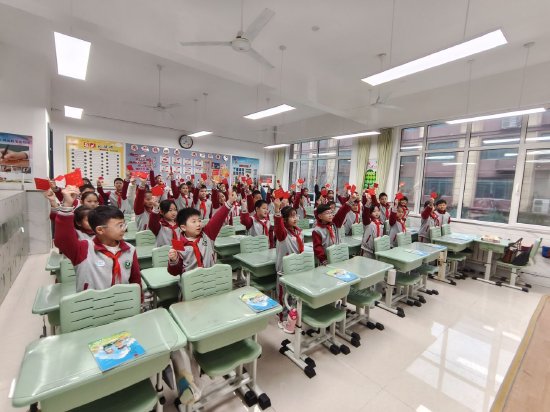 校门口暖意融融,校领导与执勤教师早早守候,为孩子们送上印有“鲲鹏之志”“踔厉奋发”的新学期“祝福红包”。孩子们双手接过这份期许,脸上洋溢着幸福的笑容。