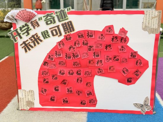 历城区钢城第二幼儿园银丰园以“‘马’上焕新,‘发’启好运”为核心,以“健康第一”为核心理念,打造兼具文化底蕴与成长仪式感的开学盛典。孩子们在哈哈镜前悦纳自我,在“马上有福”打卡点定格笑颜,抽取福卡、张贴心愿。将健康素养培育融入趣味游戏,让孩子们在主动参与中快速调整状态,浸润中华优秀传统文化,播撒自信成长的种子。