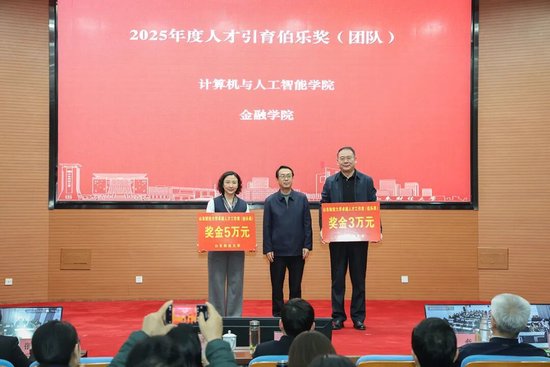 副校长赵奎皓为人才引育伯乐奖团队——计算机与人工智能学院和金融学院颁奖。