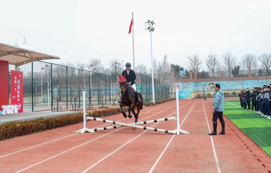 典礼最后,特色课程马术展示精彩上演,表演者们身着专业服饰,与骏马配合默契,展现出优雅的姿态与昂扬的精神,将马年“奋勇争先”的寓意展现得淋漓尽致,赢得了师生们的阵阵欢呼与掌声,也为开学典礼画上了圆满的句号。