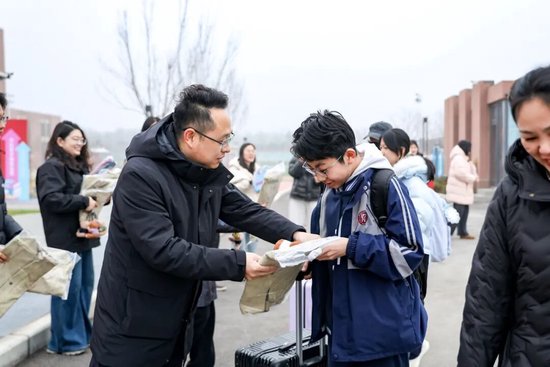 校园内暖意融融,怀瑾学子秩序井然返回校园。校门口,老师们面带微笑,用最饱满的热情迎接学子归来。学校为孩子们搭建了迎新拱门和迎宾墙,设置了专属打卡地,精心挑选了带有怀瑾元素的“开学礼”,铅笔袋、时尚帆布包、被赋予美好寓意的精美挂件,承载着学校对学子们的殷切期许。九年级家长代表为学校赠送了锦旗,表达了对孩子关怀与培养的感激之情。