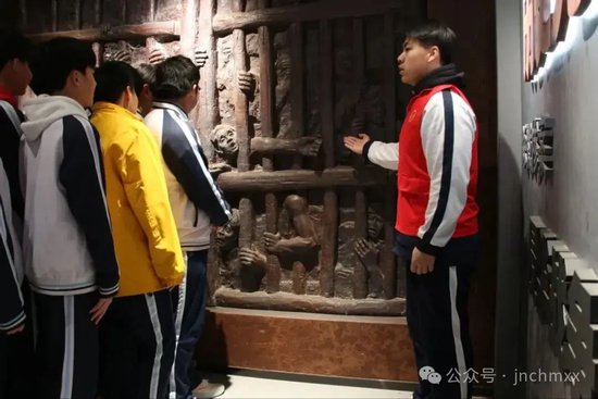 新华院作为侵华日军在济南建立的法西斯集中营,是3.5万中国抗日军民的血色牢笼,见证了抗日战争期间日军的残暴罪行,也铭刻着中华儿女不屈不挠的抗争精神。活动当天,身着红色志愿马甲的讲解员们早早到位,他们以“实物+故事”的讲解模式为同学们带来生动呈现。
