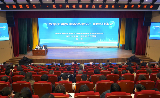 3月15日上午,济宁职业技术学院特邀中国教育科学研究院聂伟研究员作题为《“深化职业教育教学关键要素改革意见”的学习体会》专家报告。学院党委副书记、院长李中国出席并主持报告会。学院领导班子成员,副科级及以上干部、相关职能部门工作人员,各教学单位专业带头人、骨干教师等420余人参加。
