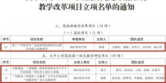 立项+3!烟职入选山东省思想政治教育教学改革项目