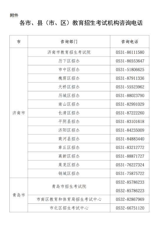 附件:各市、县(市、区)教育招生考试机构咨询电话