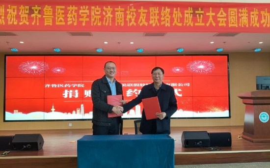 杜青青为济南校友联络处授牌,标志着齐鲁医药学院在济南的校友之家正式成立。2006级高等护理专业校友、山东助仁康复辅助器具产业发展有限公司董事长与学校签署了价值7万余元的捐赠专业康复器具和康复工程产品协议。