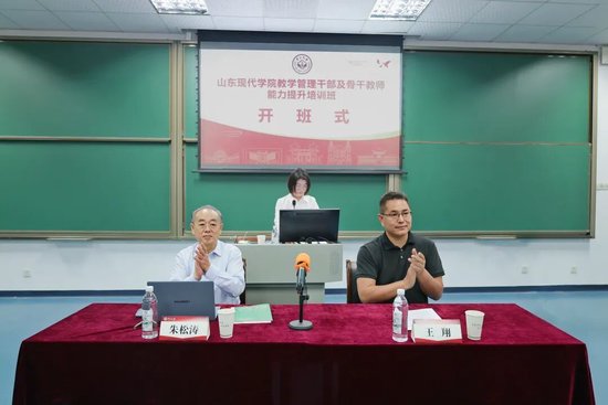 执行校长朱松涛出席并作动员讲话。他以“问道康乐园,赋能新现代”为主题,深刻阐述了本次培训的重要意义。当前高等教育正经历深刻变革,对高校管理者和教师提出了更高要求。作为学校发展的“关键少数”和教学中坚,他对全体学员提出三点希望:一是带着问题学,做虚心的求学者;二是带着思考学,做深度的对话者;三是带着纪律行,做形象的维护者,充分展现山东现代学院严谨好学的精神风貌。