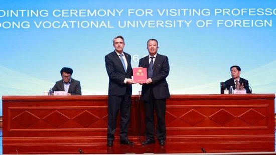 保加利亚前总统罗森·普列夫内利耶夫受聘为山东外事职业大学客座教授并作专题报告