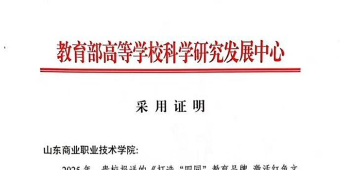 关注日前,教育部高等学校科学研究发展中心印发《采用证明》,山东商业职业技术学院报送的《打造“四同”教育品牌 激活红色文化育人效能——山东商业职业技术学院红色文化育人资源实践案例》成功入选《高校红色文化资源育人年度发展报告(2024)》,为新时代高校红色文化资源育人工作提供了借鉴和参考。