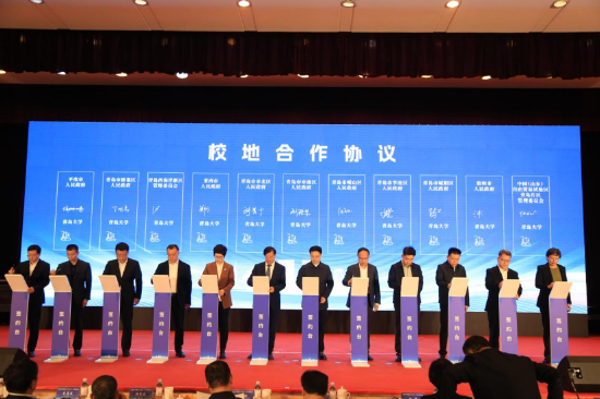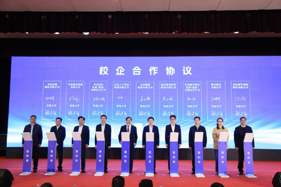 青岛大学与青岛市10个区市和自贸片区签订校地合作协议。与山东健康集团有限公司等9家企业签订校企合作协议。与海信集团控股股份有限公司、海尔集团公司签订卓越工程师学院理事长单位合作协议,与歌尔股份有限公司等8家代表企业签订卓越工程师学院副理事长单位合作协议。