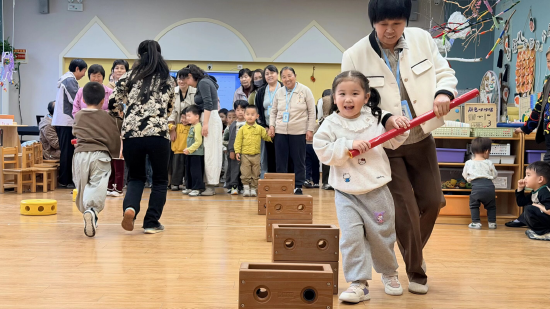 教学活动结束后,趣味十足的亲子游戏正式开始。家长和孩子一起参与游戏、相互配合,现场充满欢声笑语。大家在轻松欢乐的互动中增进了亲子感情,也让家长更加了解幼儿园游戏化、生活化的教育方式。孩子们用自己的方式表达着快乐与喜爱,温馨又感人。