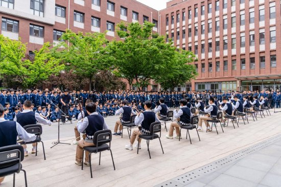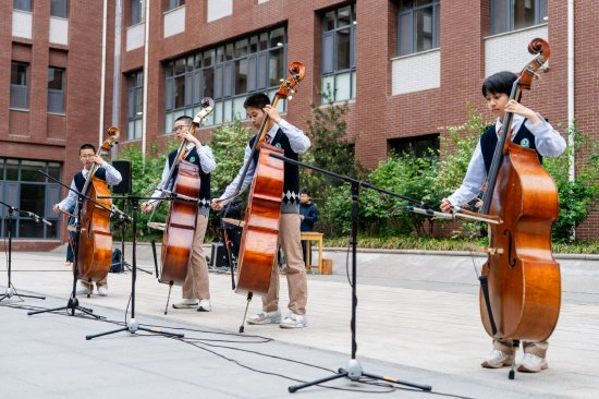 什么是浸润?在济南历城第二中学最近的大课间里。怀抱民族乐器的少年,在教学楼前的空地上、宿舍区的连廊下、稼轩广场的石阶边。琴弓拉动,弦音骤起,鼓点落下——就这样让音乐与风声、与阳光、与远处窗边探出的身影,自然地交织在一起。