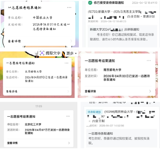 从晨光熹微到星光满天,从书山题海到复试现场,他们以笔为剑、以梦为马,凭借扎实的专业功底与坚韧的备考毅力,成功考入新疆大学、中国农业大学、北京邮电大学、北京化工大学、南京林业大学等知名高校,在更高学府深耕思政专业,追逐学术理想。