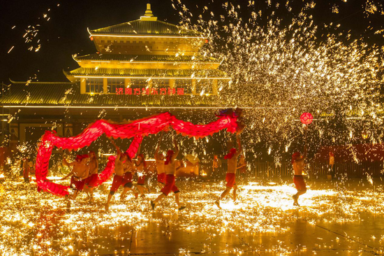非遗项目火龙钢花,观千度铁水打出万朵钢花