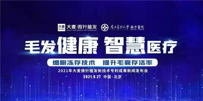 关注9月27日,中国首都北京新闻发布厅,以“毛发健康·智慧医疗”为主题的2021年大麦微针植发新技术专利成果新闻发布会圆满结束。会上,大麦微针植发携手南方医院科研组重磅推出专利科研成果——毛囊细胞活性培养液(IS)技术,该技术核心优势为可以让离体后毛囊细胞活性从4小时延长到8小时,活性提升一倍,大大提升毛囊存活率。