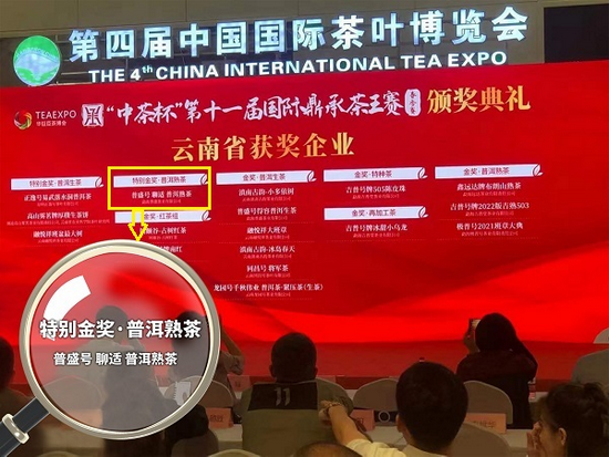 关注历时2个多月征集、审评的第十一届国际鼎承茶王赛春季赛5月22日圆满落幕。由勐海普盛茶业有限公司推送的普盛号“聊适”熟茶于赛事中一路过关斩将,荣获普洱茶熟茶组唯一“特别金奖”。